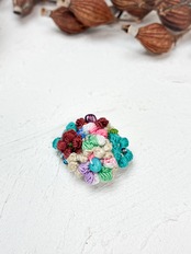 今回のハナノタバシリーズは、色彩豊かな小花をぎゅっと束ねたブローチです。