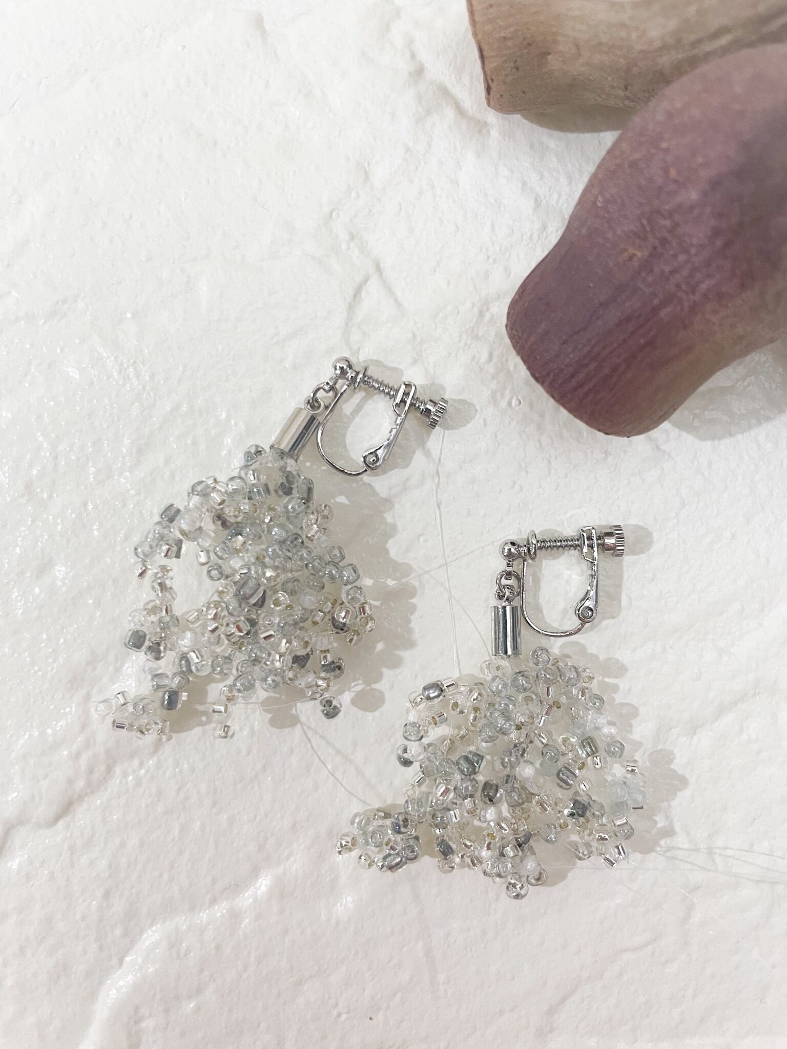 トウメイの曇空は、灰色のピーズを主役に、クリアビーズを添えて仕立てました。